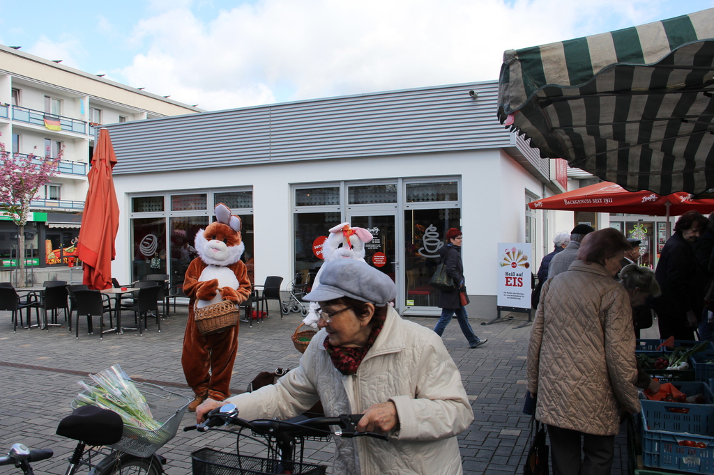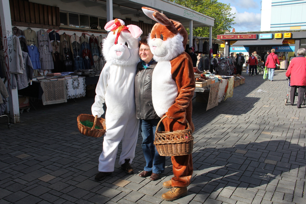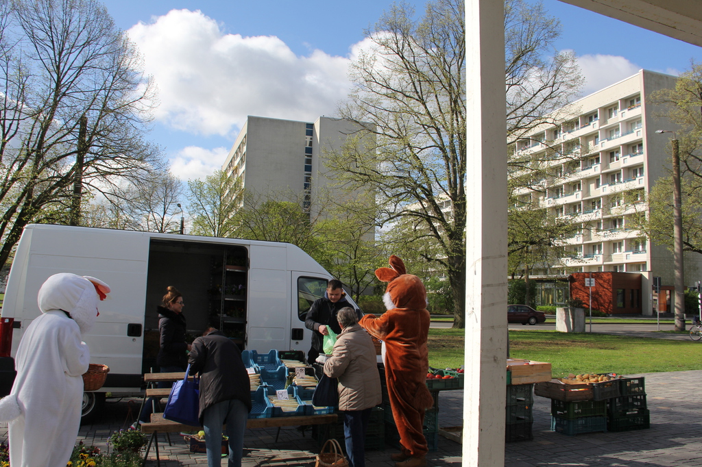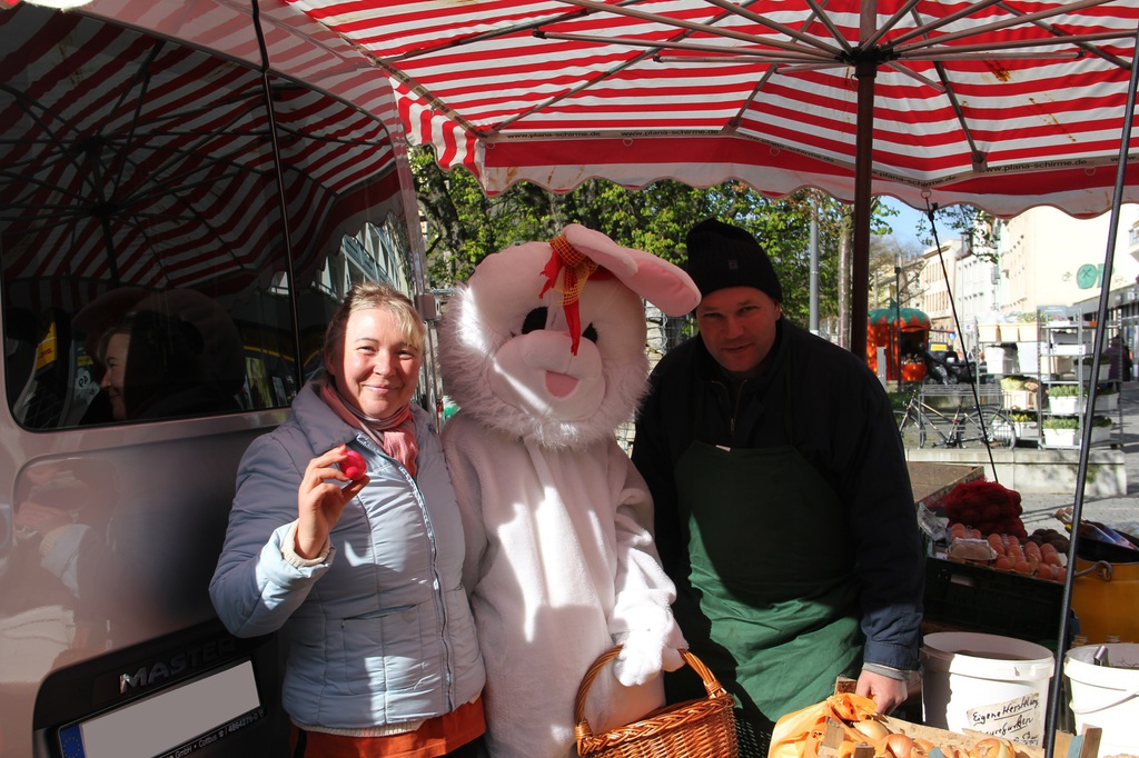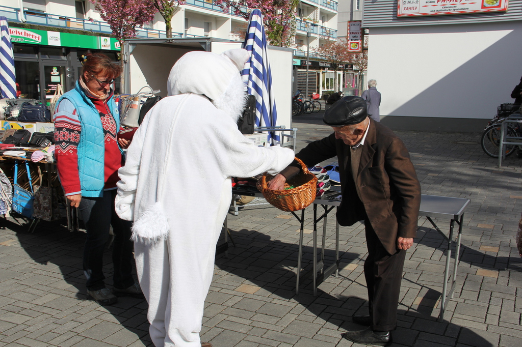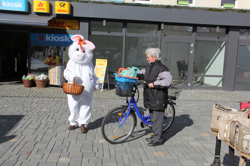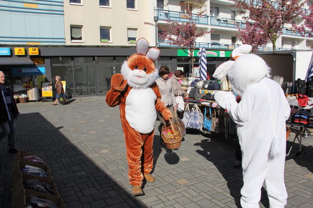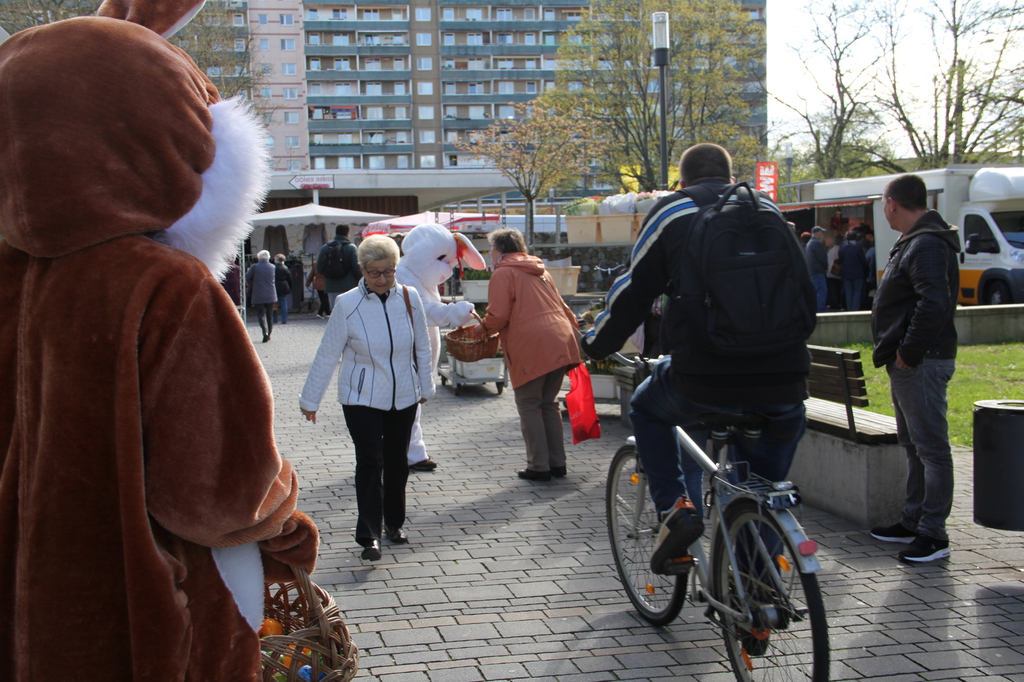 Am Donnerstag, den 13.04.17  habe zwei Häschen bunte Ostereier auf dem Wochenmarkt im Ortsteil Sandow „verloren".